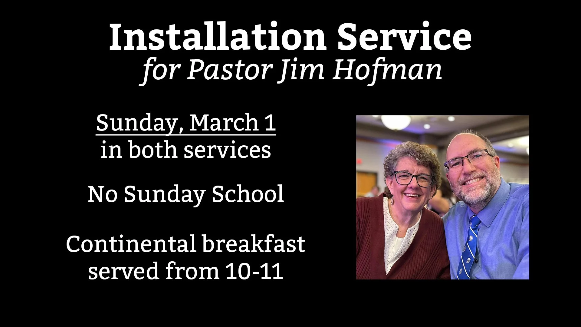 Mar 1 | Installation Service for Pastor Jim Hofman