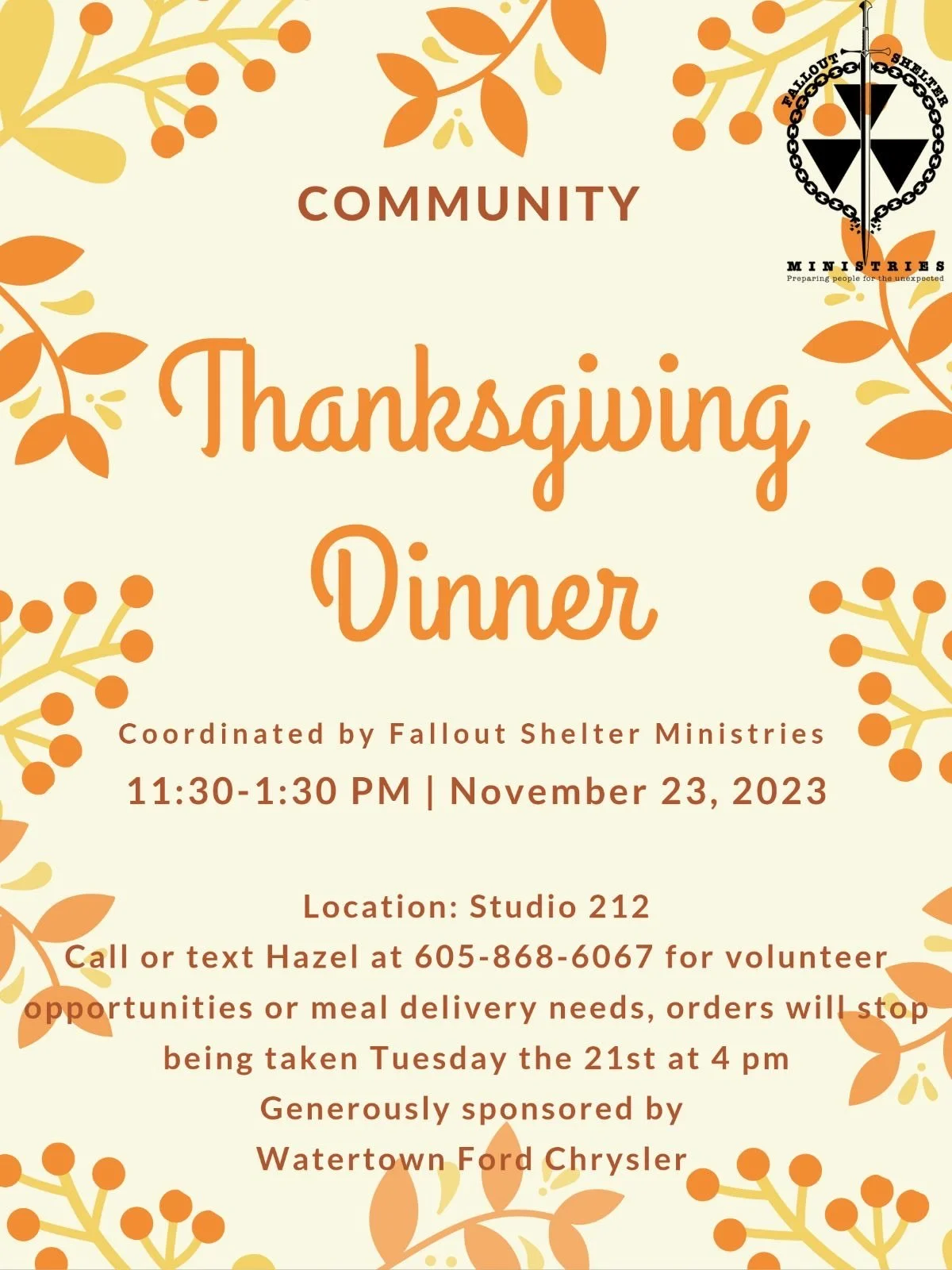 If you need a place to go for Thanksgiving dinner, this is a great place to join others in our community - or volunteer to help!