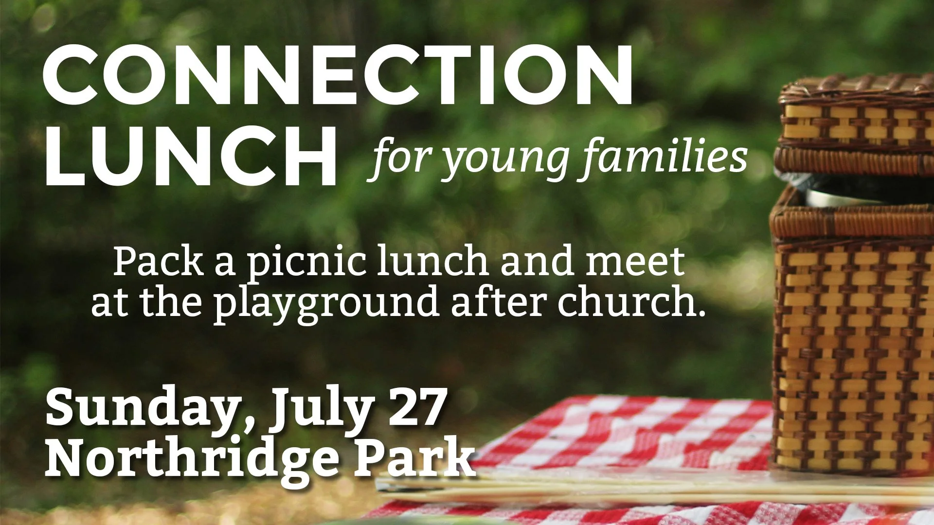 July 27 | Connection Lunch for young families. Pack a lunch and meet at Northridge Park after the 11:00 service.